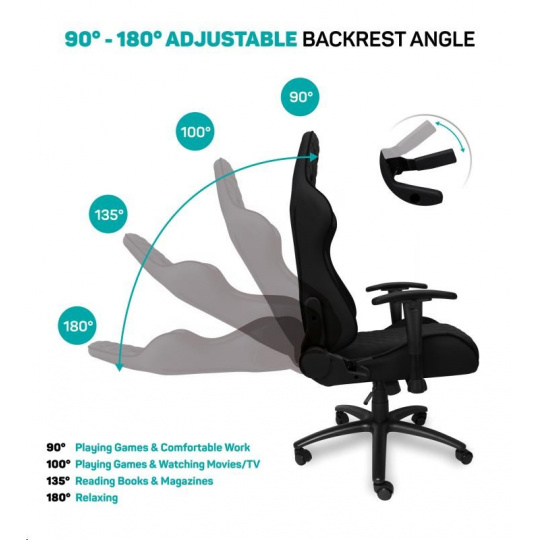 Vyniká luxusním zpracováním, moderním ergonomickým designem a velmi stabilní konstrukcí. Mnohačetná nastavení vyhoví každé postavě. Design byl speciálně navržen pro dlouhodobé sezení a umožňuje i běžnou práci doma i v kanceláři. Ideální pro mnohahodinové hraní bez kompromisů.