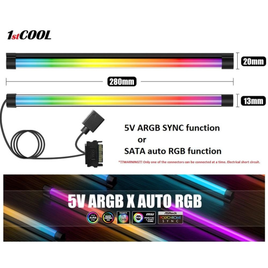 1stCOOL AURA RAINBOW led ARGB osvětlení, skleněná trubice 28cm 3-pin ARGB konektor, nebo automatický režim přes SATA konektor