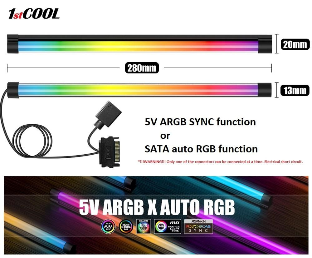 1stCOOL AURA RAINBOW led ARGB osvětlení, skleněná trubice 28cm 3-pin ARGB konektor, nebo automatický režim přes SATA konektor