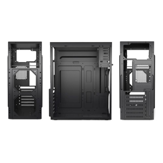 Provedení skříně:Mini Tower / micro ATX; Barva skříně:Černá; Počet pozic 3.5" (HDD):2; Počet pozic 2.5" (SSD):2; Bočnice:Plná; Podsvícení:bez podsvícení; Vybavení PC skříně:Přední Audio panel, Přední USB panel.... více