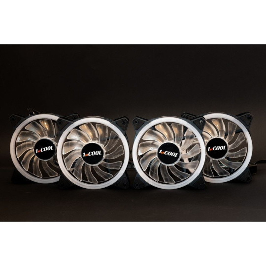 součástí výbavy je SET ventilátorů s adresovatelnými RGB LED diodami skládá se z 4*120mm RAINBOW (duhový) ARGB fan s možností propojení s Vaší základní deskou pomocí 3pin aRGB konektoru + nano/reset řadič (kompatipilní se systémy ASUS Aura Sync, MSI Mystic Light, GIGABYTE RGB Fusion i ASRock Polychrome Sync).