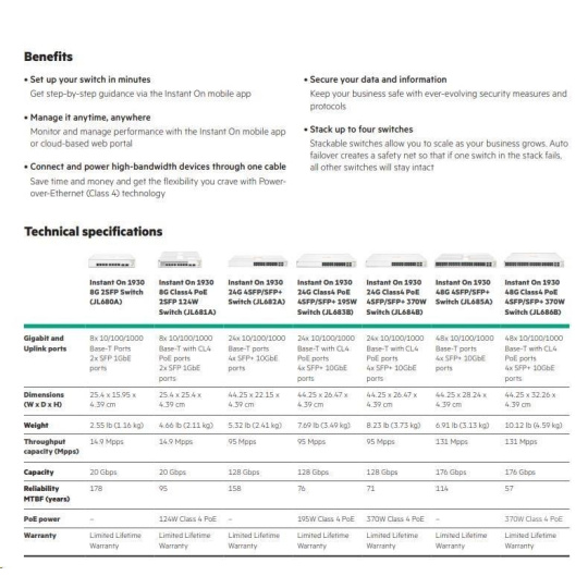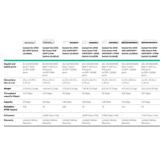 5 x HPE Networking Instant On Switch 24p Gigabit CL4 PoE 4p SFP+ 370W 1930