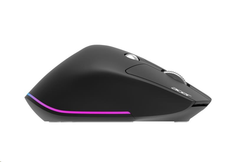 ACER bezdrátová myš Easy Fit Mouse,ergonomická,4000dpi,6 tlačítek,RGB,10m dosah,USB-C,BT,Black