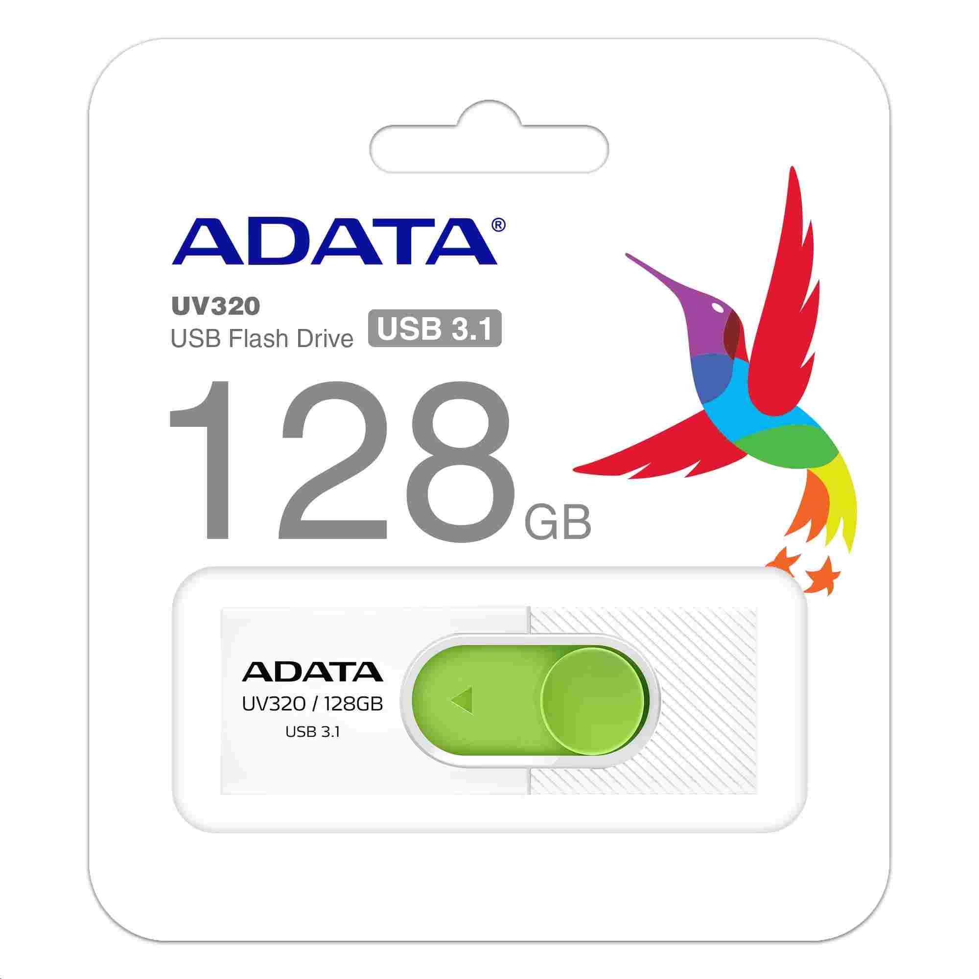 ADATA Flash Disk 128GB UV320, USB 3.1 Dash Drive, bílá/zelená