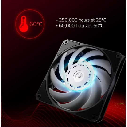 XPG VENTO PRO 120 PWM Fan has a verified MTTF (mean time to failure) 250,000 hours at 25?, or 60,000 hours at 60? ambient, which makes it ideal for heavier duty loads, e.g. more space-constrained builds with higher internal temperatures. Taking advantage of the high precision dual bearings, XPG VENTO PRO 120 PWM Fan can quietly operate and maintain stable at a large temperature range.