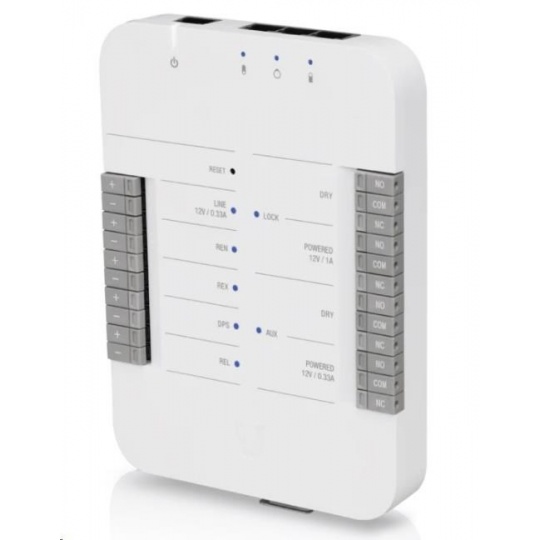 UniFi Access Hub je základní komponenta k instalaci přístupového systému UniFi Access. UniFi Access Hub je inteligentní jednodveřový IP kontroller, který je kompatibilní s většinou elektrických zámků, magnetických zámků a s celou řadou 12V příslušenstvím jako jsou pohybové senzory, tlačítka a alarmy. Instalace je velmi rychlá, snadná a nabízí jednoduchou správu uživatelů, návštěvníků, plánů a úrovní či oprávnění přístupů přes UniFi Access Controller. Hub je napájen přes PoE, které není součástí dodávky.