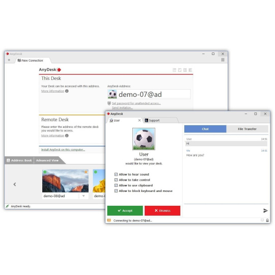 Poskytování efektivní podpory všem zaměstnancům nebo zákazníkům znamená, že klíčová je flexibilita. Bez ohledu na to, kde se vaši uživatelé nacházejí a jaké operační systémy používají, AnyDesk vám umožní se k nim bezpečně a stabilně připojit a efektivně vyřešit jakýkoli problém.