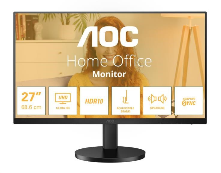 Zvyšte svou produktivitu na maximum s monitorem AOC U27B3AF. Tento 27palcový UHD monitor se může pochlubit plynulou obnovovací frekvencí 60 Hz a elegantním třístranným bezrámečkovým designem, který zajišťuje pohodlné sledování. Dejte sbohem namáhání krku díky výškově nastavitelnému stojanu, který poskytuje ergonomické funkce pro vaše držení těla. Díky technologii Adaptive Sync si navíc vychutnáte obraz bez slz a ohromně čistá grafika s podporou HDR10 zvýší váš vizuální výkon. Díky vestavěnému 2wattovému reproduktoru si můžete dopřát lepší zvukový zážitek.