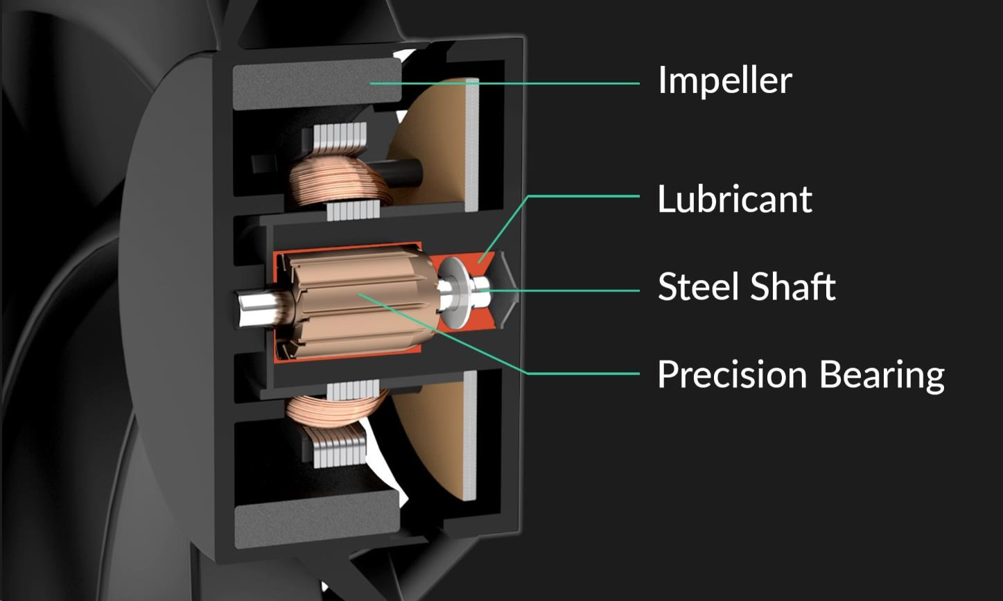 - HIGH-QUALITY BEARING - Thanks to an alloy/lubricant combination developed in Germany, friction inside the bearing is reduced and higher efficiency is achieved. In this way, less heat develops, there is less bearing noise and the fan life is extended.
