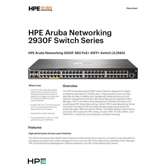 Aruba 2930F 48G PoE+ 4SFP+ Swch RENEW JL256A