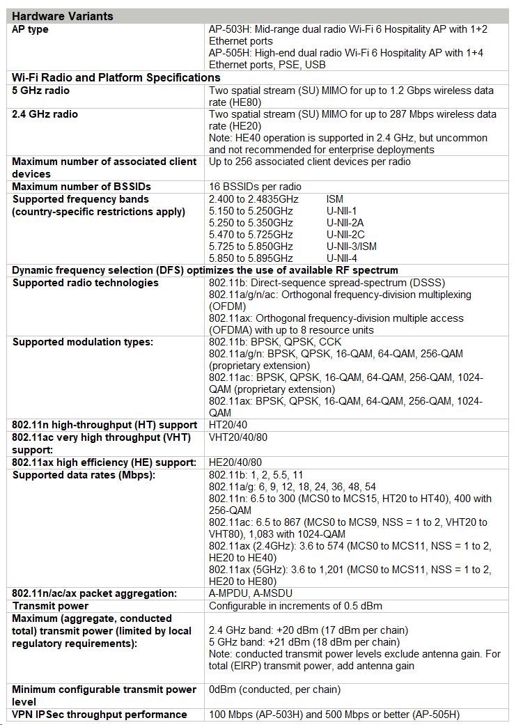 Aruba AP-503H (RW) Dual-radio 802.11ax 2x2 Unified Hospitality AP with 1+2 Ethernet R3V36AR RENEW .