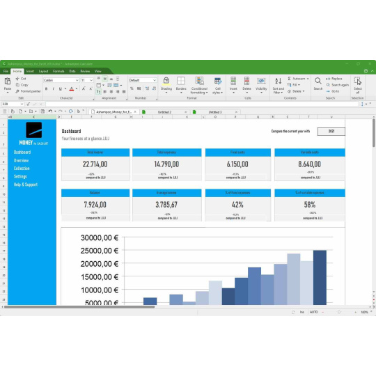 Vytváření složitých výpočtů a grafů v tabulkách může být obtížné: S aplikací Calculate z balíku Ashampoo Office 9 je to zábavné a poutavé. Od jednoduchých rozvrhů až po složitou firemní finanční dokumentaci - Calculate je kapkovitá náhrada Excelu se všemi funkcemi a žádnou nekonzistencí. Nabízí okamžité zvýraznění syntaxe a ověřování vzorců, které vám pomohou odhalit chyby během několika sekund. S více než 350 výpočty, snadnou manipulací s tabulkami a podporou obřích datových listů s miliony položek je Calculate 9 ideální pro jakoukoli tabulkovou úlohu. Funkce na profesionální úrovni, jako jsou otočné tabulky, uspokojí i ty nejpokročilejší uživatele. A tisk hotových tabulek je mimořádně snadný díky novému náhledu zalomení stránky. Calculate 9 používá formát souborů XLSX, tedy stejný formát, jaký používá Microsoft Excel!