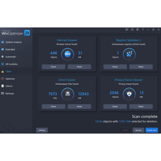 Důvěryhodné čističe byly průběžně vylepšovány a nyní obsahují zcela nové vyhledávací algoritmy pro ještě výkonnější čisticí schopnosti. Zaměřují se nejen na odstraňování nepořádku, stop po prohlížení a nepotřebných položek registru, ale kladou také větší důraz na citlivá data. S nástrojem Privacy Traces Cleaner dosahují bezprecedentní ochrany soukromí. Dokonce i vyhledávání a odstraňování prázdných složek je nyní bezproblémové. Čističe jsou samozřejmě optimalizovány pro všechny podporované operační systémy, aktuální aktualizace a všechny běžné prohlížeče.