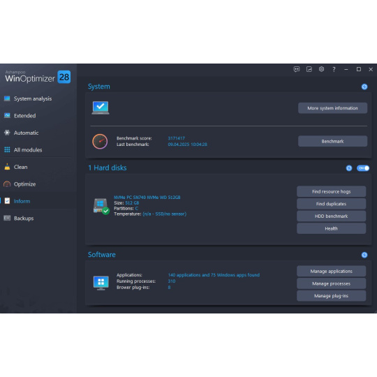 S novým programem Ashampoo WinOptimizer 28 získáte automaticky nejlepší zážitek z práce s Windows. Jeho nová automatizace zrychluje, čistí a ladí vaše aplikace. Nechte svůj počítač plynule přizpůsobit vašim potřebám pomocí prioritizace procesů, automatického čištění dočasných souborů a vlastních konfigurací profilů na základě nového nástroje Profile Booster. Ať už jde o hraní her, práci nebo prohlížení webu, maximalizujte výkon systému nebo šetřete prostředky, volba je na vás. Nový nástroj Crash Analyzer nabízí hluboký pohled na pády systému a jejich příčiny, zatímco čtyři pokročilé čističe zajišťují soukromí a poskytují údržbu systému. Díky vylepšené správě paměti dokáže nyní WinOptimizer využít více prostředků k provádění komplexních analýz téměř okamžitě!