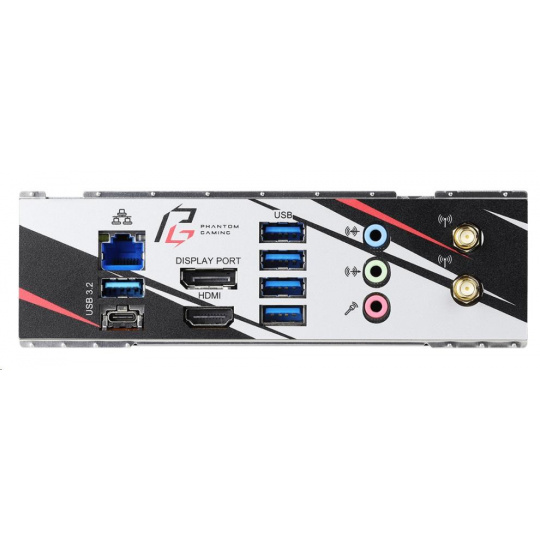 | Rear panel I/O | - 2 x Antenna Ports - 1 x HDMI Port - 1 x DisplayPort 1.4 - 1 x USB 3.2 Gen2 Type-A Port (10 Gb/s) (Supports ESD Protection) - 1 x USB 3.2 Gen2 Type-C Port (10 Gb/s) (Supports ESD Protection) - 4 x USB 3.2 Gen1 Ports (Supports ESD Protection) - 1 x RJ-45 LAN Port with LED (ACT/LINK LED and SPEED LED) - HD Audio Jacks: Line in / Front Speaker / Microphone |