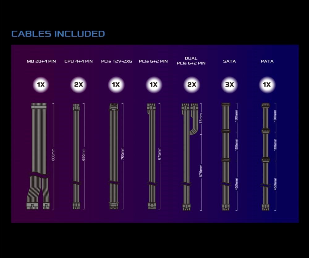 - Kompatibilní s ATX3.1 a PCIe5.1
