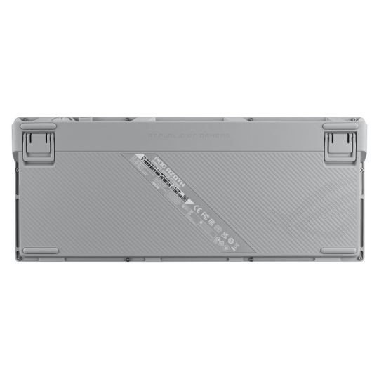 Zakázková herní klávesnice ROG Azoth s tvarovým faktorem klávesnice 75, těsněním, třívrstvou tlumicí pěnou a kovovým horním krytem, vysoce přizpůsobitelná s předem namazanými mechanickými spínači ROG NX vyměnitelnými za provozu, stabilizátory klávesnice ROG, kryty kláves PBT doubleshot a mazací sadou, tri - připojení režimu s 2,4 GHz technologií SpeedNova, OLED displejem, třícestným ovládacím knoflíkem, třemi úhly náklonu a podporou Mac