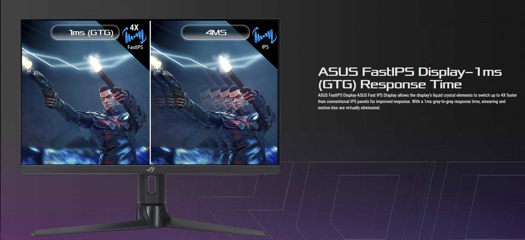 • Fast IPS technology enables a 1ms response time (GTG) for sharp gaming visuals with high frame rates.