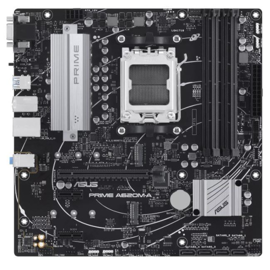 ASUS PRIME A620M-A is equipped with outstanding features, including 6-layer PCB design, DDR5 6400+(OC), PCIe 4.0 support, dual M.2 slots, USB 3.2 Gen 1 ports, front USB 3.2 Gen 1 Type-C®, BIOS FlashBack™, DisplayPort /HDMI™/VGA, Addressable Gen 2 headers, Aura RGB header, Aura Sync, Q-LED Core, ASUS OptiMem II, Fan Xpert 2+, Power Saving, Two-Way AI Noise Cancellation, Armoury Crate, ASUS 5X PROTECTION III and SafeSlot Core, which will bring users maximizing performance, stability and compatibility for the very best DIY PC experiences.