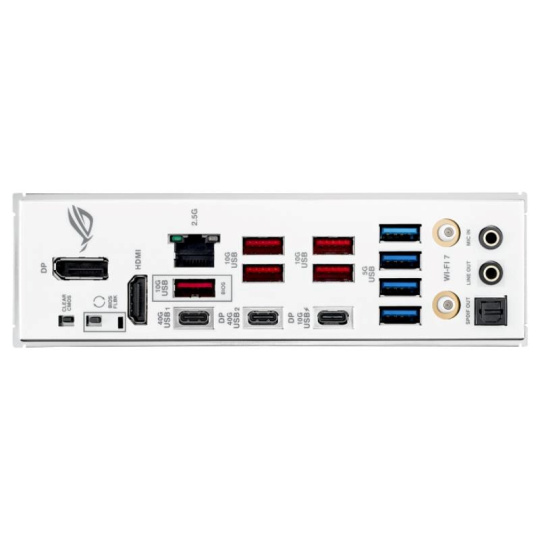 The ROG Strix X870-A stands out with its striking white PCB, offering a fresh and modern aesthetic that seamlessly complements almost any system build. The matching metallic heatsinks enhance its clean, crisp look, while subtle RGB lighting on the I/O shroud allows you to either maintain a sleek, understated appearance or showcase a bold, luminous design.