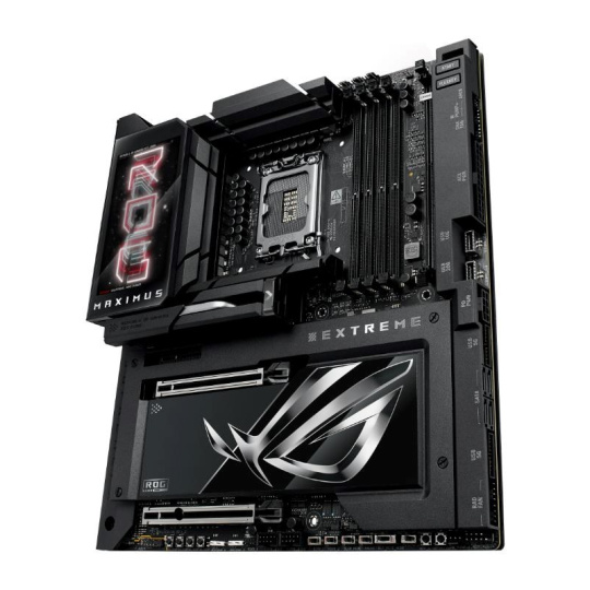 The ROG Maximus Z890 Extreme is the ultimate expression of cutting-edge motherboard technology and performance. Discover the upper limits of Intel® Core™ Ultra Series 2 processors, DDR5 modules, PCIe® 5.0 graphics cards, NVMe storage, USB connectivity, Thunderbolt™ functionality and more – all wrapped up in a sleek package featuring a full-color 5-inch long LCD screen that can deliver vibrant imagery or live system stats to suit your personal tastes.