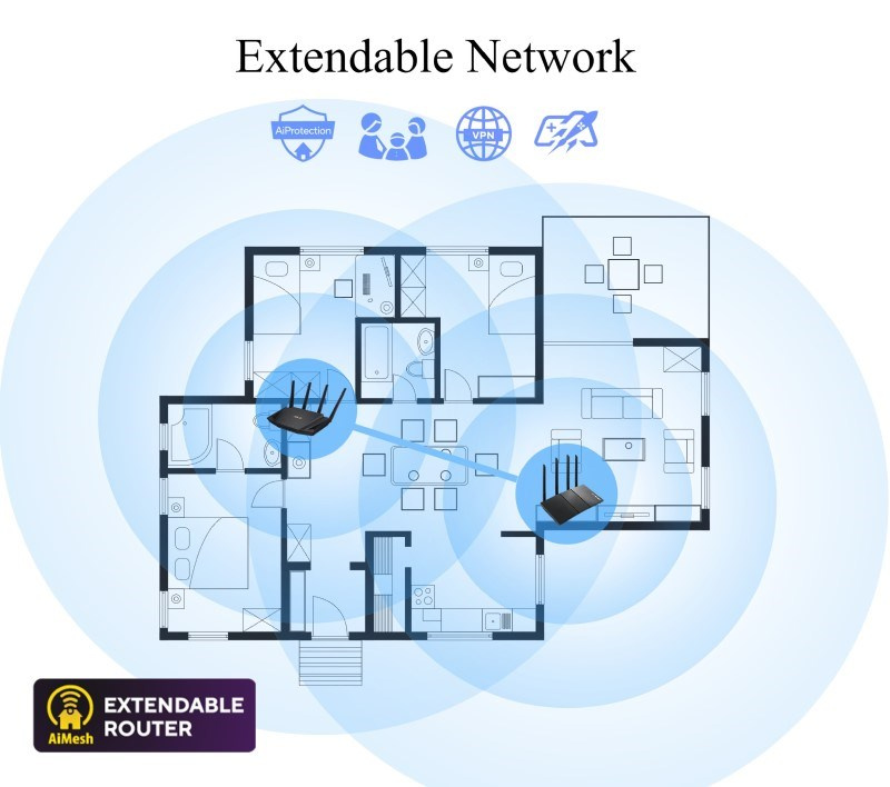 AX4200 Dual Band WiFi 6 (802.11ax) AiMesh Router supporting free network security with AiProtection Pro, Safe Browsing, Instant Guard and VPN features, Parental controls, Easy setup, Wall mount WiFi for Smart Homes – Ultrafast WiFi 6 router delivering up to 4,200 Mbps speed, with a powerful quad-core CPU for better efficiency to handle more devices Aesthetic and Functional Design – An innovative foot stand for both desktops and wall mount, and the ultra-minimalist design can fit into your home or business environments. One-Tap Safe Browsing – Block undesirable content with ASUS Safe Browsing, and protect your kids online by filtering explicit content from search results. Subscription-Free Network Security – Protect your home network with AiProtection Pro, powered by Trend Micro™. And when away from home, ASUS Instant Guard gives you a one-click sharable secure VPN. Easily Extend Your Network – Simply add any AiMesh-compatible routers for improved WiFi coverage with ASUS AiMesh technology..
