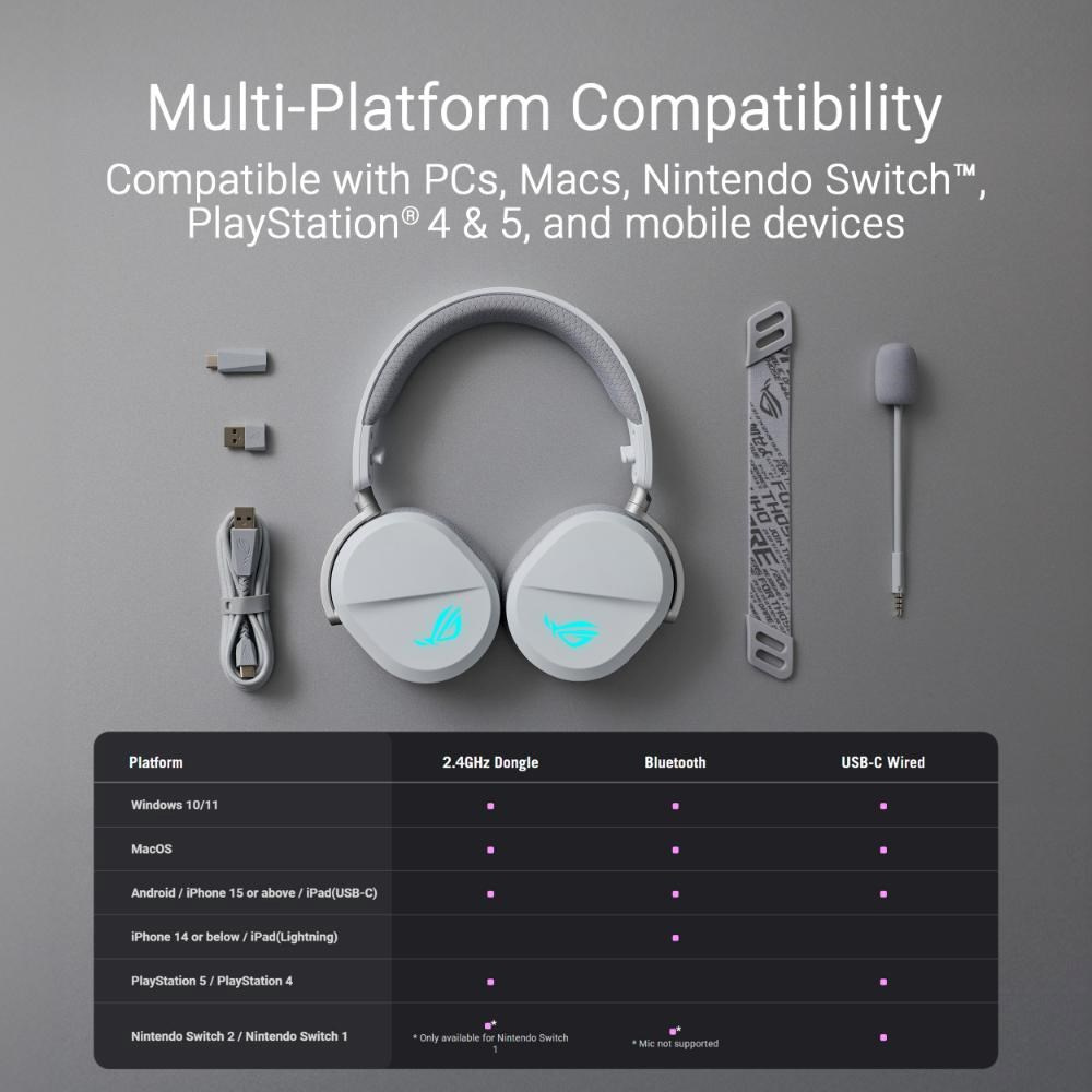 ASUS sluchátka ROG Pelta, Bezdrátové BT a RF 2.4GHz, ARGB, bílá