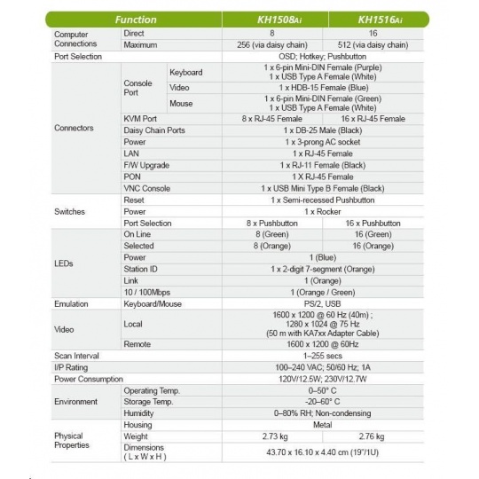 • vzdálenost mezi PC a KVM může být 40m pro 1600 x 1200 @ 60Hz