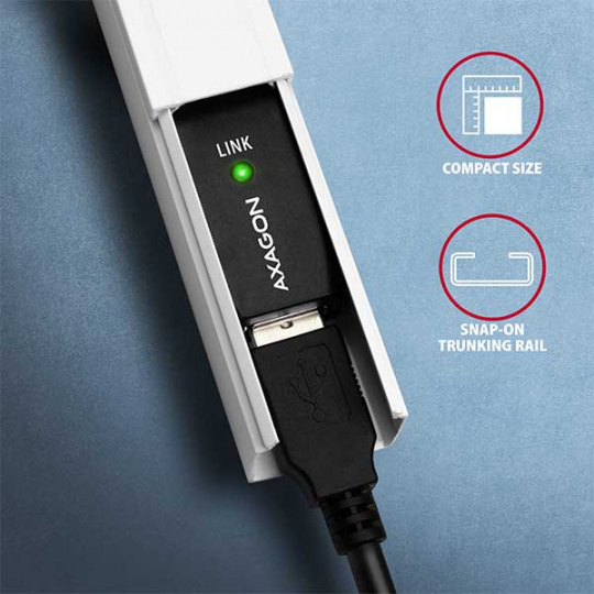 Aktivní prodlužovací USB 2.0 kabel AXAGON ADR-205 délky 5 metrů je ideální k propojení Vašeho počítače s USB zařízením jako je myš, klávesnice, webkamera, tiskárna, skener, plotr a dalšími. Aktivní USB repeater kabel zesiluje průchozí signál a umožnuje připojit USB zařízení na výrazně větší vzdálenost, než Vám umožní pasivní kabel. Dosah kabelu je možné dále prodloužit použitím několika kabelů za sebou.