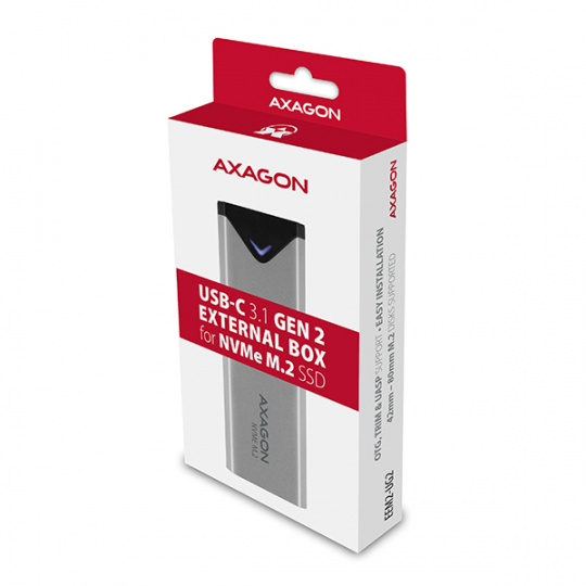 Super rychlý externí box AXAGON EEM2-UG2 s USB 3.2 Gen 2 rozhraním je určen pro NVMe (PCI-Express) M.2 SSD disky.