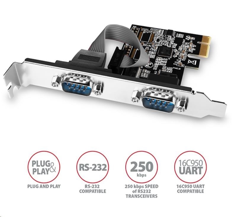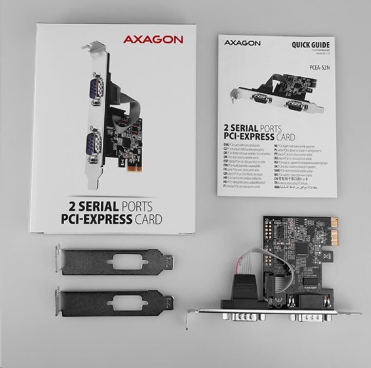 AXAGON PCEA-S2N, PCIe řadič - 2x sériový port (RS232) 250 kbps, vč. LP