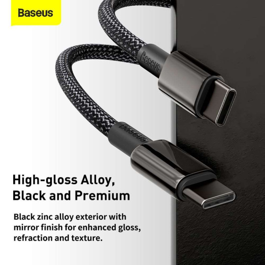 Baseus Tungsten Gold rychlonabíjecí / datový kabel USB-C na USB-C 100W 1m, černá
