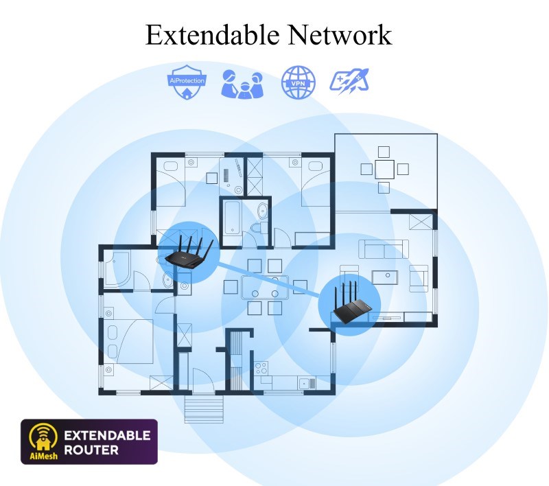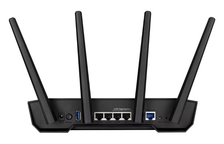 TUF Gaming AX3000 V2 Dual Band WiFi 6 Gaming Router with Mobile Game Mode, 3 steps port forwarding, 2.5Gbps port, AiMesh for mesh WiFi, AiProtection Pro network security Ultrafast WiFi 6 - Enjoy speeds up to 3000 Mbps and 4X network efficiency with OFDMA and 160 MHz channels. True Multi-Gigabit wired speeds - Aggregated 2 Gigabit LAN connections, wired 2.5Gbps port and WiFi 6. Easy Port Forwarding in 3 Steps - Open NAT makes port forwarding simple, eliminating frustrating and complicated manual configuration. ASUS AiMesh Support – Create a flexible, seamless whole-home mesh network with AiMesh-compatible routers. Tested Durability and Stable Operation - TUF Gaming AX3000 V2 is built to be durable and undergoes verified testing to ensure reliable, stable operation. 802.11a : up to 54 Mbps 802.11b : up to 11 Mbps 802.11g : up to 54 Mbps WiFi 5 (802.11ac) (1024QAM) : up to 867 Mbps WiFi 6 (802.11ax) (2.4GHz) : up to 574 Mbps WiFi 6 (802.11ax) (5GHz) : up to 2402 Mbps 2.4GHz 2x2 5GHz 2x2 RJ45 for 2.5 Gigabits BaseT for WAN x 1, RJ45 for Gigabits BaseT for LAN x 4, USB 3.2 Gen 1 x 1,.