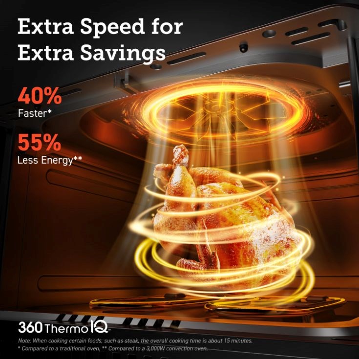 • Technologie THERMO IQ 360° HEAT CIRCULATION zajišťuje rovnoměrné vaření bez nutnosti míchání nebo otáčení jídla
