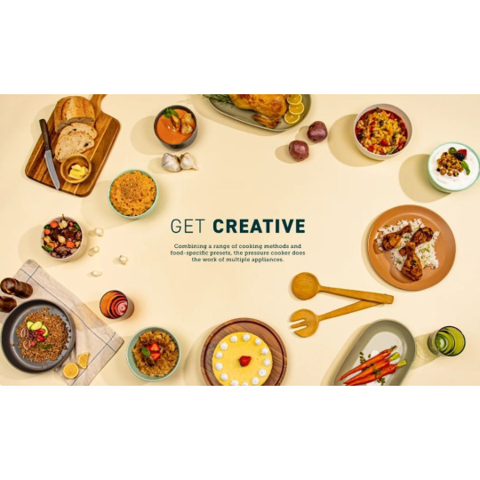 S několika programy vaření a funkcemi, jako je rychlé vaření, pomalé vaření, vaření v páře, předvaření a mnoho dalšího, tento tlakový hrnec představuje skvělý nástroj pro každodenní vaření. S jeho 6litrovou kapacitou je dostatečně prostorný pro přípravu jídel pro 4 až 6 osob.