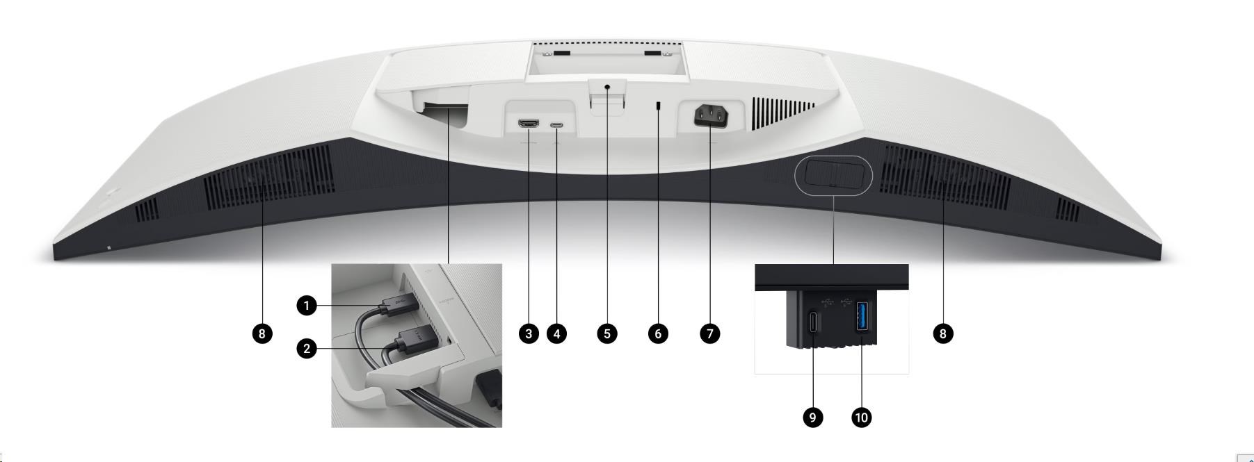 • 1 USB-C 5Gbps upstream port (DisplayPort 1.4 Alternate Mode, Power Delivery up to 65 W) (Supports up to 3440 x1440, 120 Hz, HDR, AdaptiveSync)