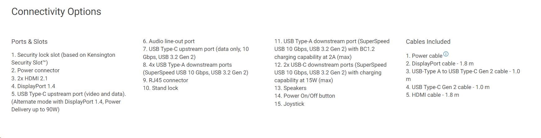 5. USB Type-C upstream port (video and data). (Alternate mode with DisplayPort 1.4, Power Delivery up to 90W)