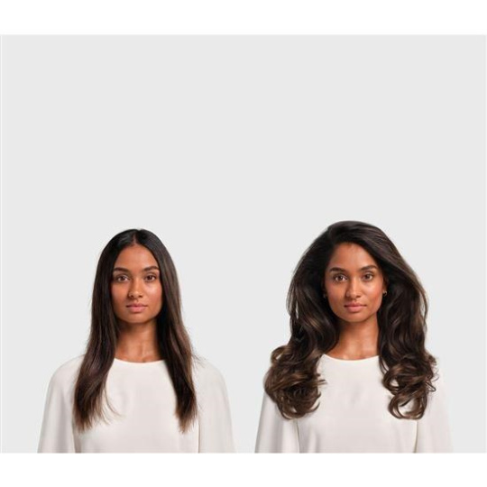 Skryje polétavé vlasy pod ty delší, vyhladí je a dodá účesu lesk a zářivý vzhled. Vše jen pomocí vzduchu s využitím Coanda efektu. Pro použití pouze se studeným proudem vzduchu.
