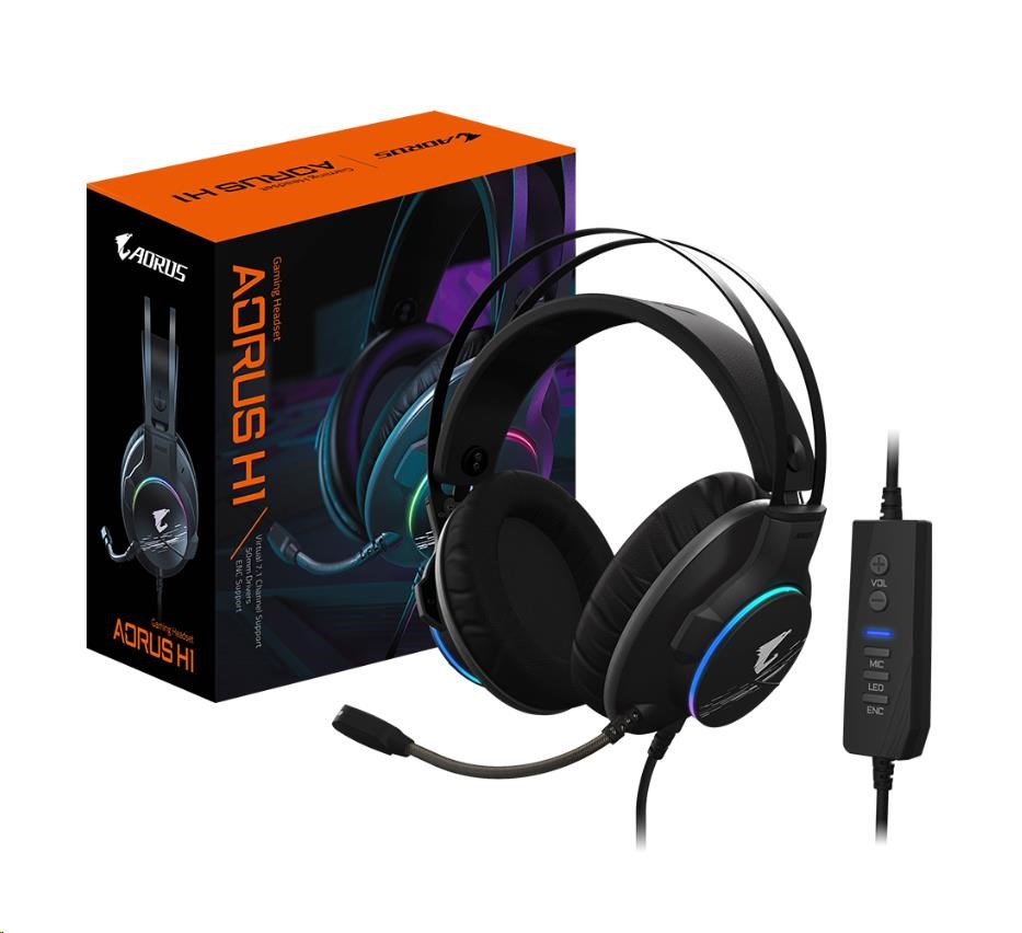 BAZAR GIGABYTE sluchátka s mikrofonem AORUS H1, headset, USB (ROZBALENO)