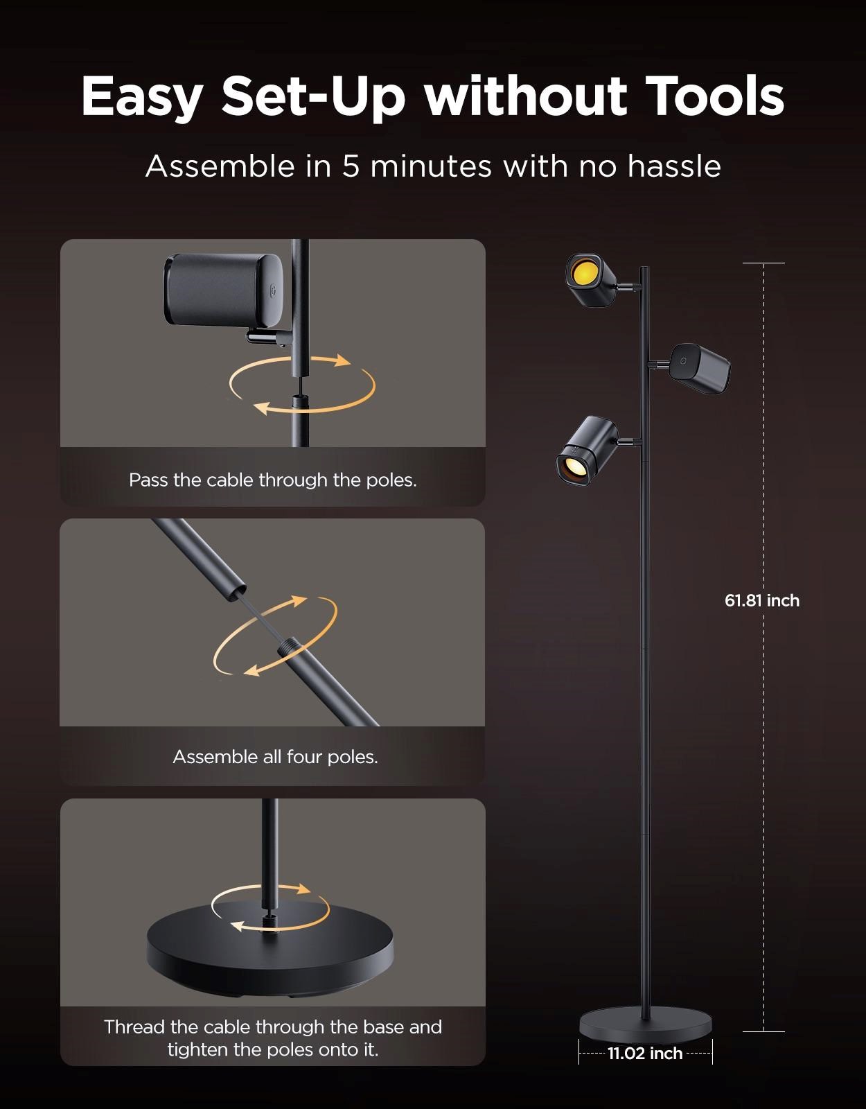 Govee Tree Floor Lamp je připravena k okamžitému použití bez složité montáže. Stačí lampu rozbalit, zapojit a spustit aplikaci – vše je rychlé a intuitivní. Díky tomu si můžete užívat chytré osvětlení okamžitě, bez zbytečných starostí nebo nástrojů.