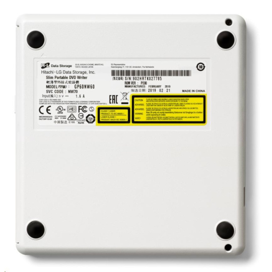 BAZAR - HITACHI LG - externí mechanika DVD-W/CD-RW/DVD±R/±RW/RAM GP60NW60, Slim, White, box+SW - Poškozený obal (Komplet