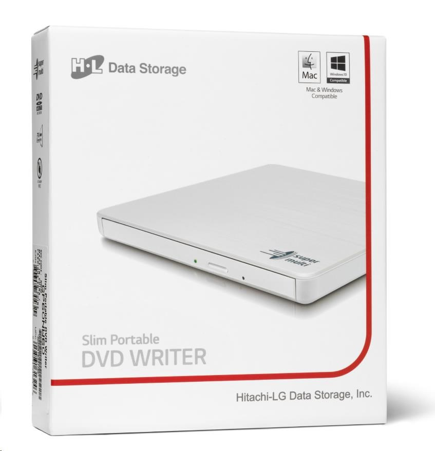 BAZAR - HITACHI LG - externí mechanika DVD-W/CD-RW/DVD±R/±RW/RAM GP60NW60, Slim, White, box+SW - Poškozený obal (Komplet