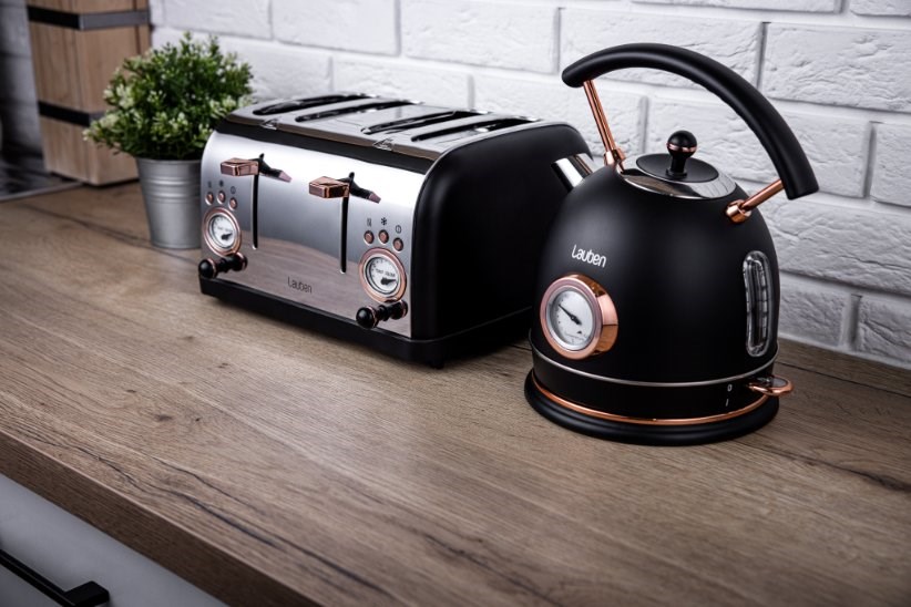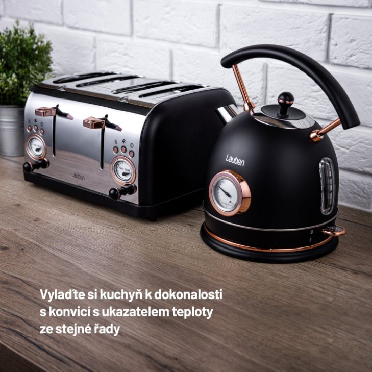 Luxusní design Lauben 4 Slice Toaster 1500BC z nerezové oceli tvoří dokonalý pár s rychlovarnou konvicí Lauben Kettle 17BC s ukazatelem teploty. Tento snídaňový set se stane ozdobou vaší kuchyně, a aby dojem nic nerušilo, překážející kabel lze uschovat do dna základny, kde je pro něj vytvořen prostor.