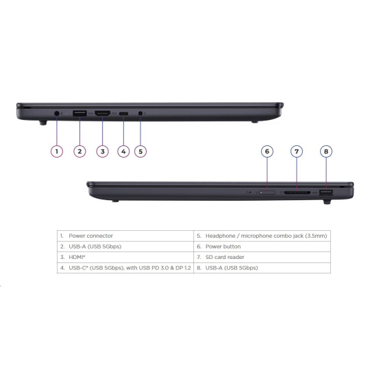 1x USB-C® (USB 5Gbps / USB 3.2 Gen 1), with USB PD 3.0 and DisplayPort™ 1.2