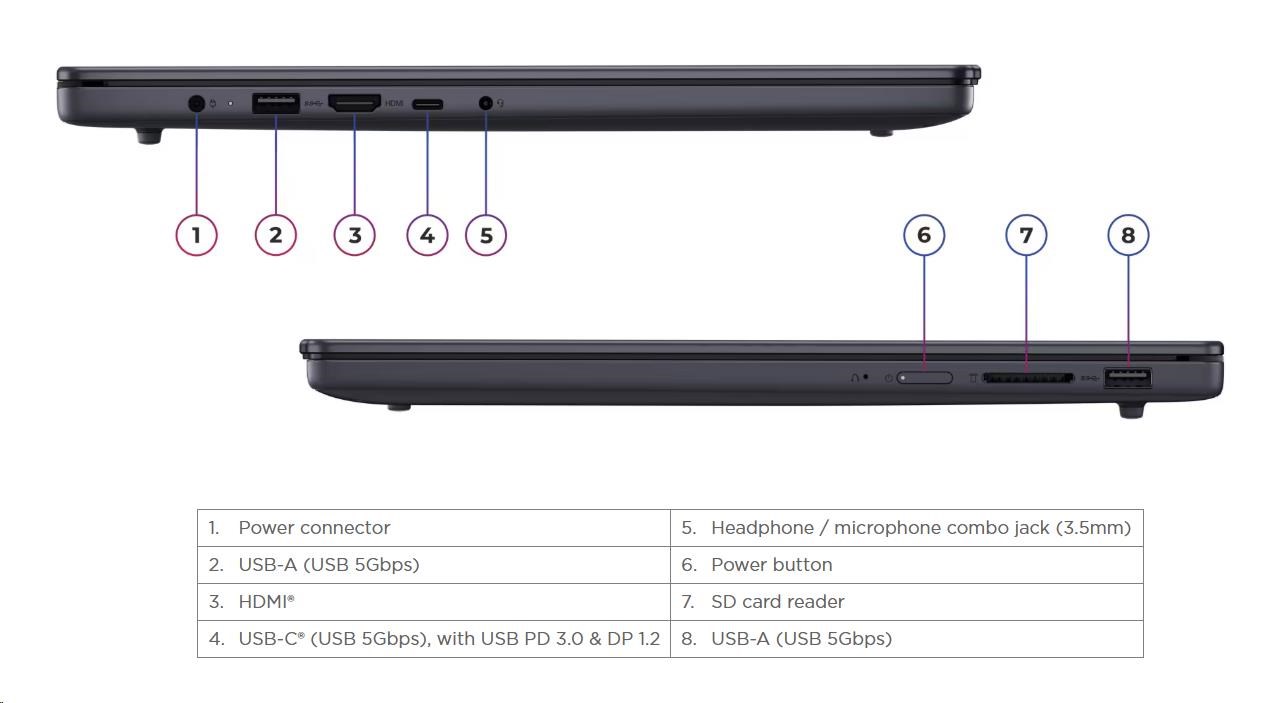 1x USB-C® (USB 5Gbps / USB 3.2 Gen 1), with USB PD 3.0 and DisplayPort™ 1.2