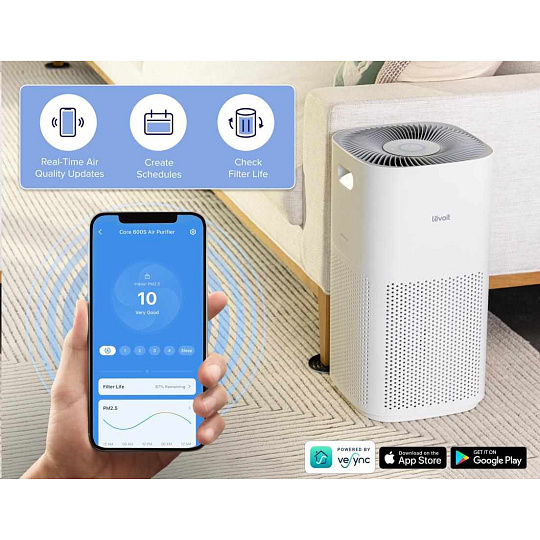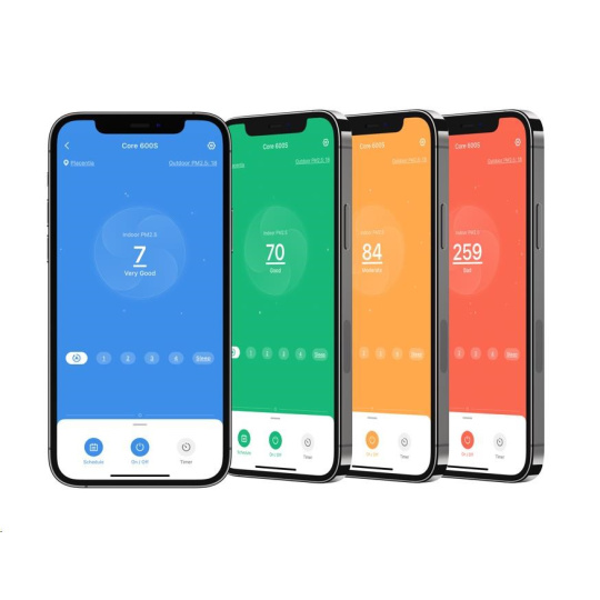 Chytrou čističku vzduchu Levoit Core 600S Smart můžete ovládat přímo na displeji nebo také přes aplikaci určenou pro smartphony a tablety Android a Apple. V aplikaci si můžete nastavit různé režimy, výkon, sledovat proces čištění, úroveň znečištění vzduchu nebo stav, v jakém se filtr nachází. Přes Amazon Alexa nebo Google Assistant můžete také zařadit čističku do svého Smart Home a dávat jí pokyny hlasem.