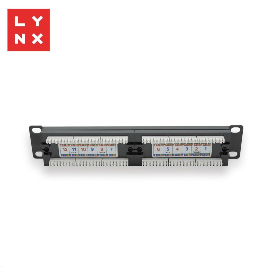 LYNX 10" patch panel 12-port, UTP Cat6, 50µ, nestíněný, černý