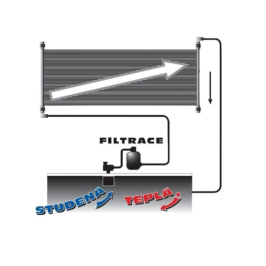 Solární panel není určen k montáži na střechy, pergoly apod. Solární ohřev musí být vedle bazénu umístěn tak, aby byl na stejné úrovni hladiny vody, nebo pod její úrovní.