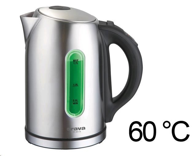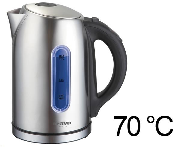 Nerezová rychlovarná konvice VK-3817 A s příkonem 2000 W a objemem 1,7 l. Konvice umožňuje elektronicky regulovat teplotu vody, zahřeje na předem zvolenou teplotu. Nastavení 5-ti různých teplot a stupnice se mění podle barev.