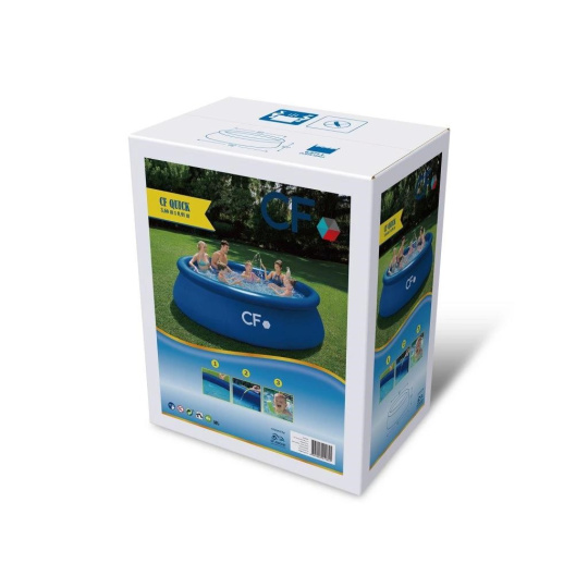 Připravte se na teplé počasí a nekonečné hodiny vodních radovánek na vlastním zahradě se samonosným nadzemním bazénem CF QUICK. Tento nadzemní bazén v modré barvě je navržen pro jednoduchou montáž a může být připraven během několika minut. Stačí jen připravit to správné místo na bazén, rozvinout bazénovou podložku, rozbalit bazén, nafouknout prstenec a napustit vodu. Stoupající voda bazén sama postaví. Tento nadzemní kruhový bazén s průměrem 366 cm je ideální pro celou rodinu a díky absenci pevných prvků je vhodný i pro menší děti (děti musí zůstat pod dohledem dospělé osoby). Bazén je vyroben z odolných a super pevných PVC materiálů, aby bylo zajištěno, že zůstane stát i přes veškerou zábavu, kterou tento bazén nabízí.